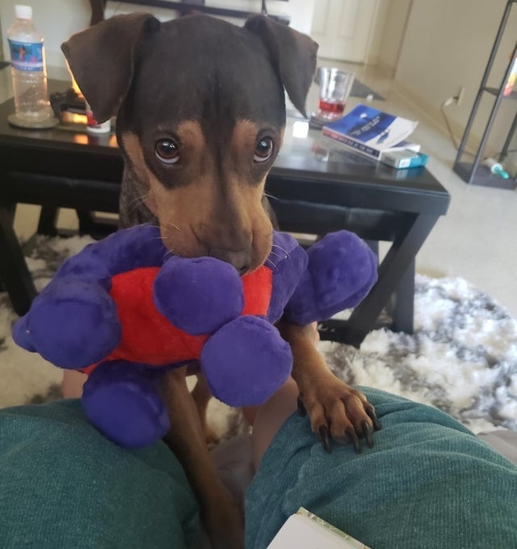«Забрали її до себе місяць тому. Зараз вона нарешті почала приносити свої іграшки, щоб пограти з нами»