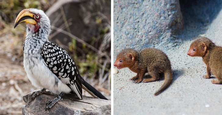 8. Карликові мангусти дружать з птахами-носорогами: звірки діляться з ними здобиччю, а ті попереджають про появу хижака, спостерігаючи за всім з висоти
