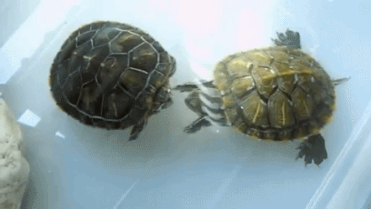 5. Щоб захопитися самку червоновухої черепахи, самець ніжно масажує їй мордочку