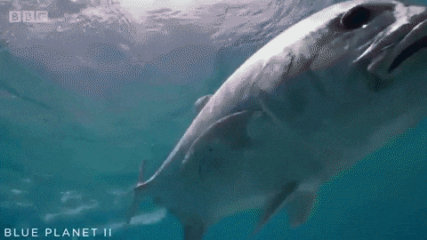 9. Гігантський каранкс спостерігає за птахом, щоб розрахувати траєкторію її польоту, а потім вистрибнути і з'їсти її на льоту