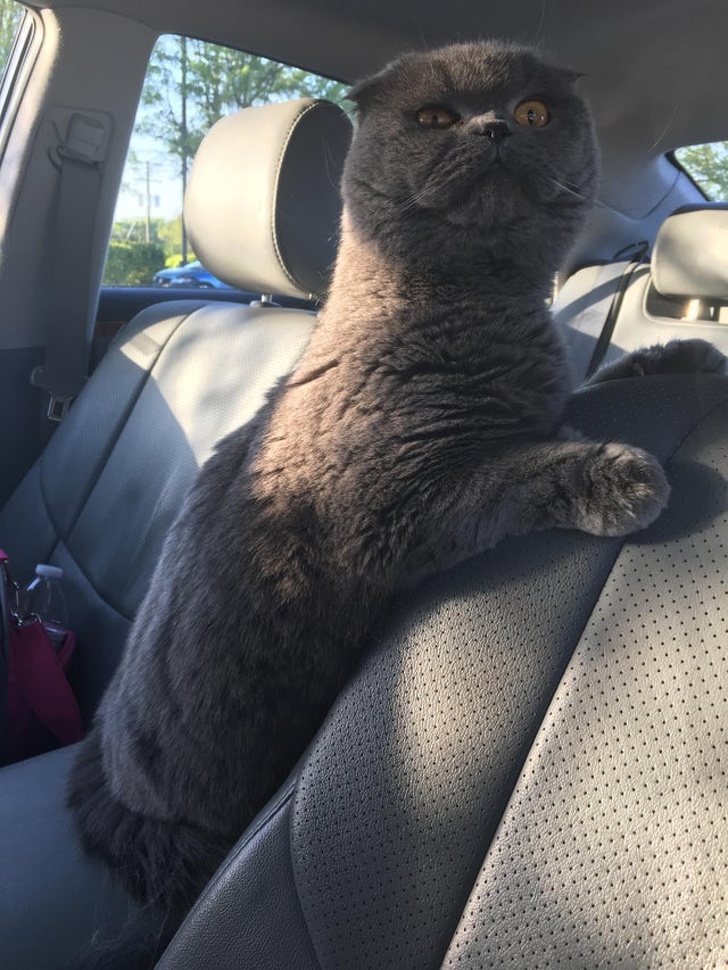 13. «Моя кішка любить їздити на машині. Вона кращий „другий пілот“: щоб я міг зосередитися на дорозі, вона кидає несхвальні погляди на інших водіїв»