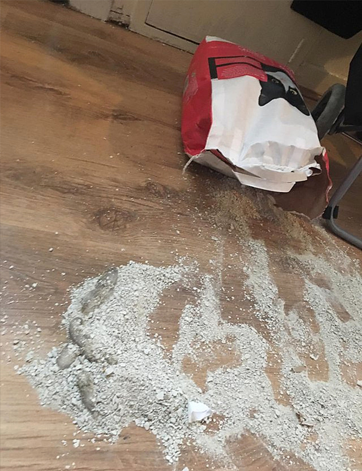 10. «Минулої ночі мій кіт не зміг потрапити у ванну з-за замкнених дверей, тому він знайшов пакет з котячим туалетом, розпоров його і тільки потім справив нужду»