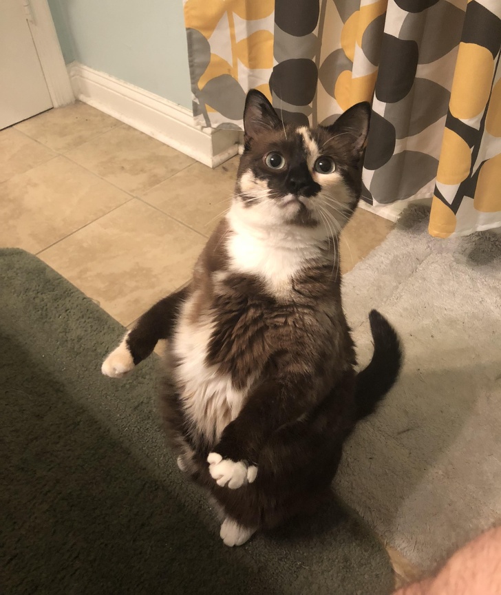6. «Навчила кішку вставати на задні лапки, і тепер вона постійно так робить»