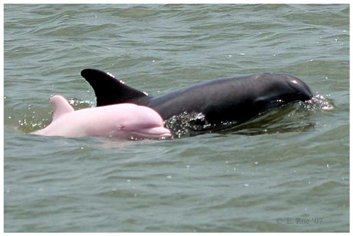 У 2007 році капітан Ерік Рой плив по річці Калкасью в Луїзіані, США. Все було як звичайно до тих пір, поки він не побачив групу афалін. Намагаючись розгледіти їх, чоловік з подивом помітив, що один з дельфінів рожевий. За словами Роя, тварина була у відмінному стані і з тих пір кілька разів траплялося на очі капітанові.