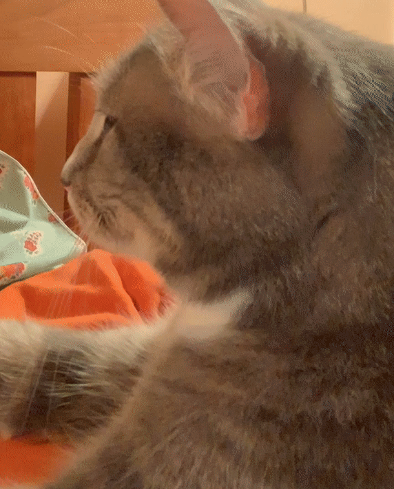 «Моя кішка ні на крок від мене не відходить. Нещодавно мені жартома подарували толстовку з „котячим“ кишенею. Вона катається в ній і не зводить з мене очей»