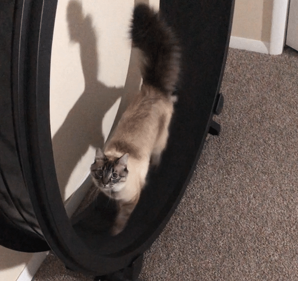 «Моя кішка любить ходити по своєму колесу, поки я займаюся на велотренажері. Те, як вона дивиться на мене, змушує моє серце танути».