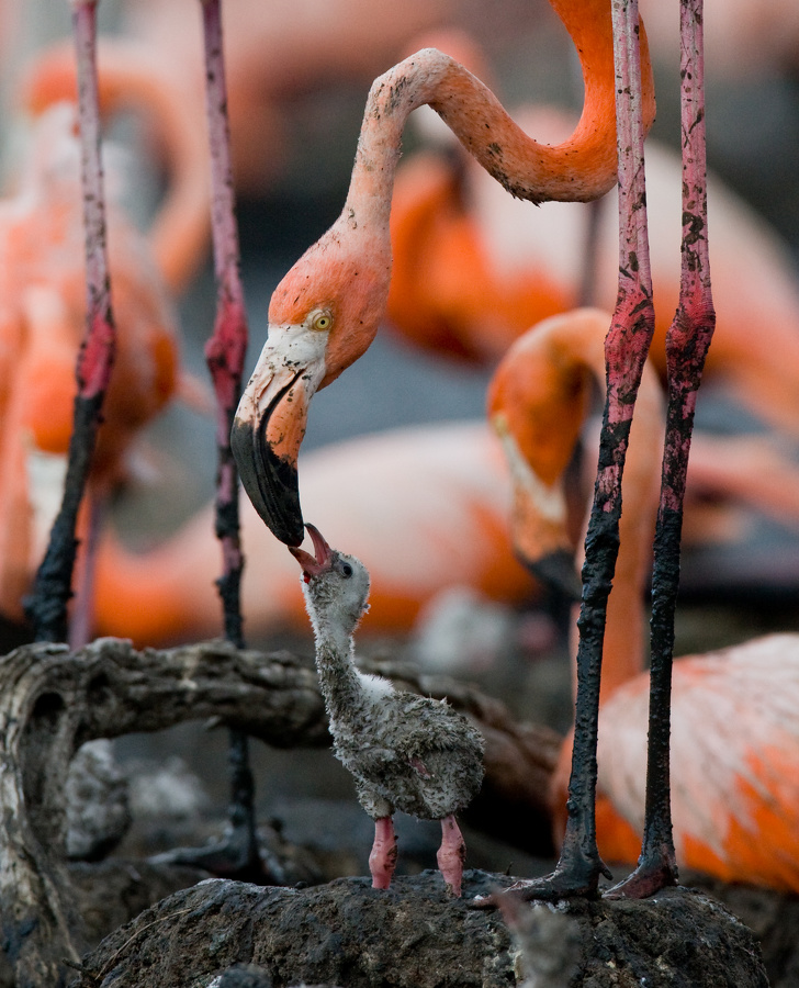 9. Фламінго народжуються з сірим пір'ям. А рожевими вони стають від того, що харчуються креветками