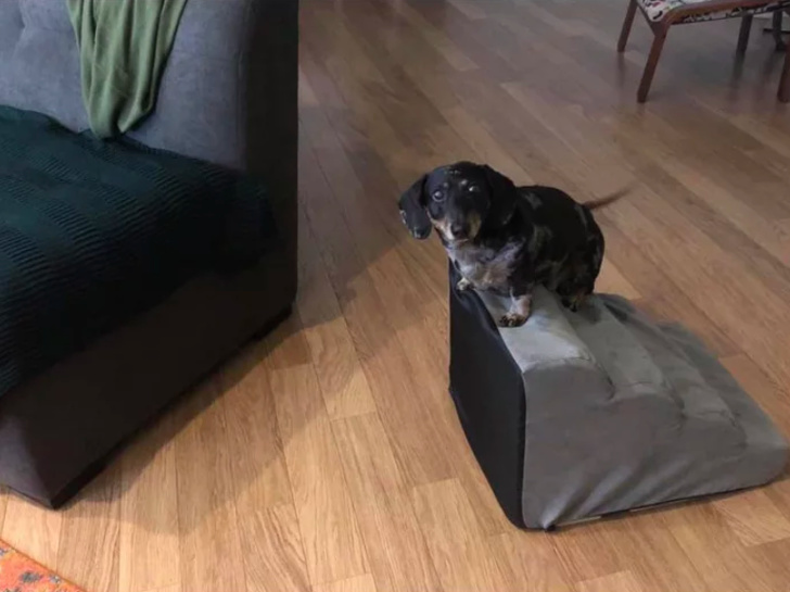 11. «Пилососив і забув присунути його драбинку назад до дивана. Повернувся і побачив, що він сидить ось так»