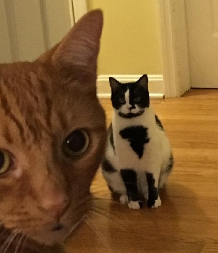25. Кошеня з ще одним кошеням прямо на мордочці