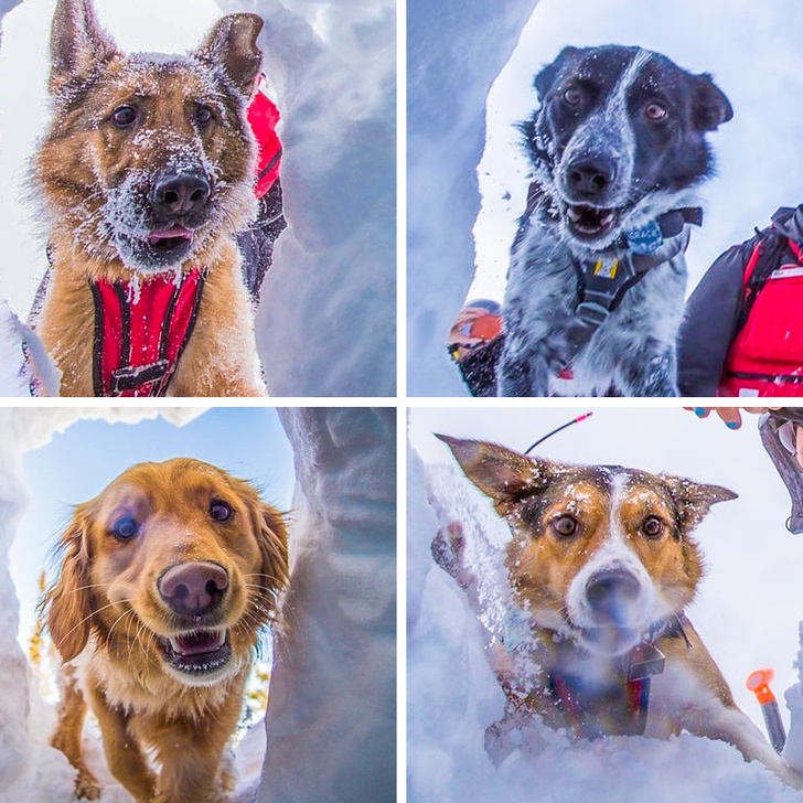 Бонус № 1: так виглядають схвильовані морди собак-рятувальників в той момент, коли вони знаходять людини під лавиною снігу