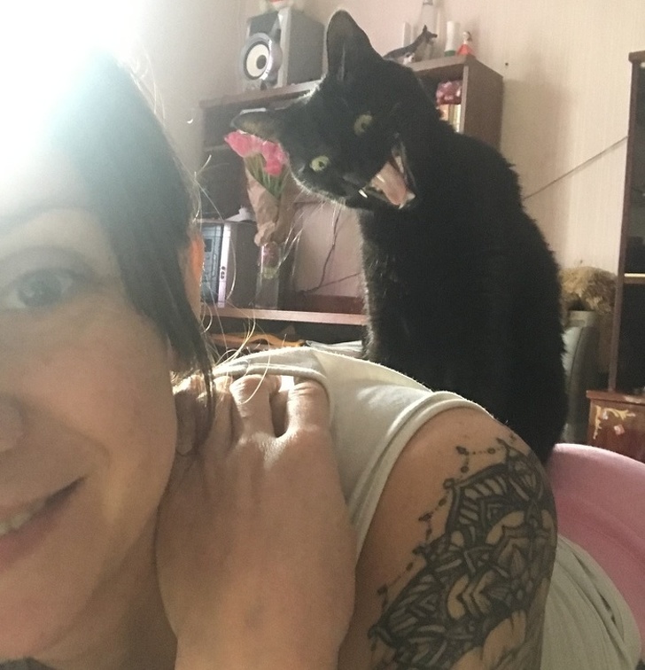 «Хотіла зробити миле фото про те, як улюблена кішка доглядає за злегка хворою господинею. Хто з нас захворілий?»