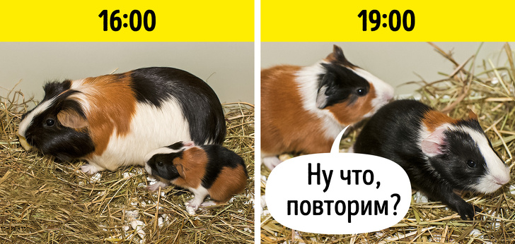 - Морська свинка — справжній рекордсмен по розмноженню. Вона може завагітніти через 55 днів після своєї появи на світ, а вже через 2-15 годин після народження малюків бути готовою до нового спаровування.