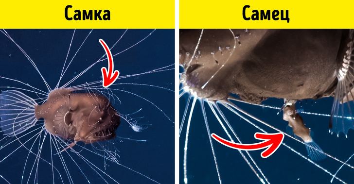 Самці глибоководних вудильників під час шлюбного періоду втрачають власну індивідуальність. Зустрівши самку, самець чіпляється за неї зубами, зростається з її тілом і живиться за її рахунок. Поступово його тіло втрачає свою форму, всі органи деградують, залишаються тільки серце, зябра і сім'яники. Під час нересту самка метає ікру, а самець запліднює її.
