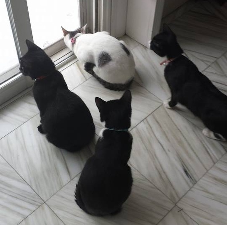 13. Вся котяча сімейка згодна, що дивитися на сніг найкраще з дому