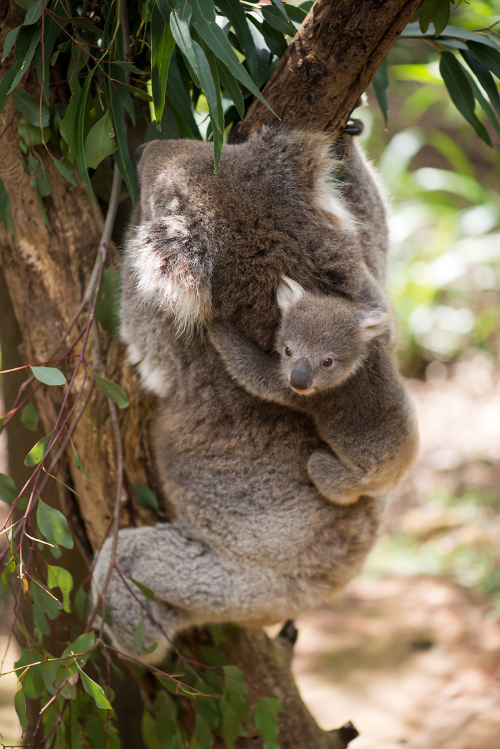 18. Коли дитинча коали виростає і перестає поміщатися в сумку, мама носить його на своїй спині