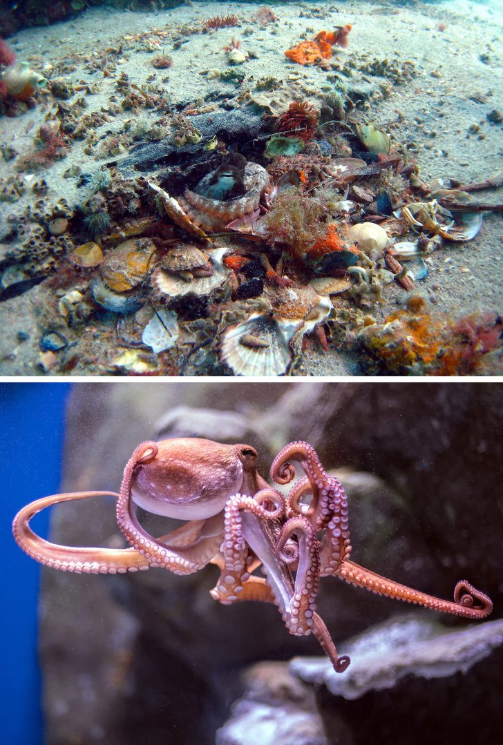 12. Восьминоги збирають блискучі предмети і мушлі і будують з них сади навколо своїх печер. Таким чином вони маскують укриття, щоб захистити себе і свій будинок від нападу