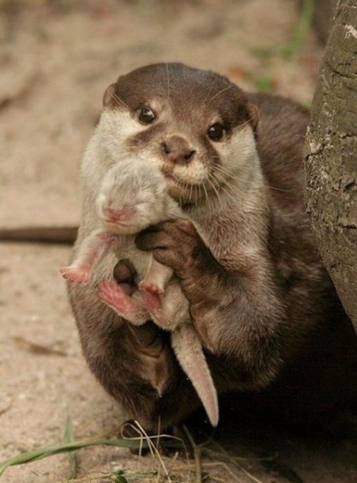 2. Видри показують своїх дитинчат, коли стикаються з небезпекою, щоб викликати у нападника співчуття