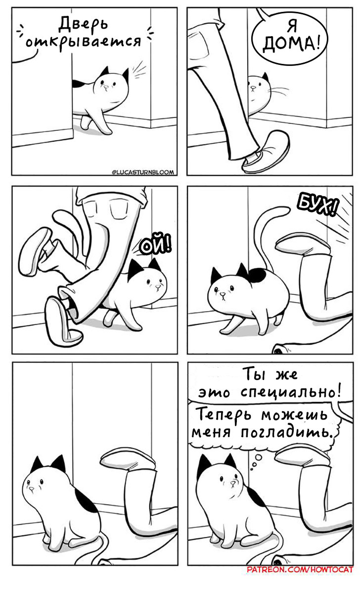 Коли художник Лукас Торнблум (Lucas Turnbloom) і його дружина принесли додому кішку, ніхто з них не підозрював, що мила непосида покладе початок веселим коміксів. Серія «Як бути кішкою» спочатку була просто жартом, натхненної витівками невгамовного вихованця. Але тепер це справжній комікс, нових випусків якого з нетерпінням чекають люди по всьому світу.