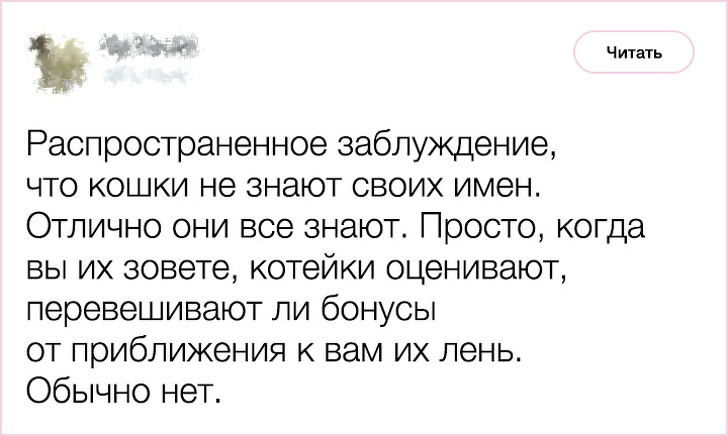- Кішки піддаються вихованню. Проблема в тому, що люди піддаються вихованню значно краще і при рівній наполегливості перемагають кішки.