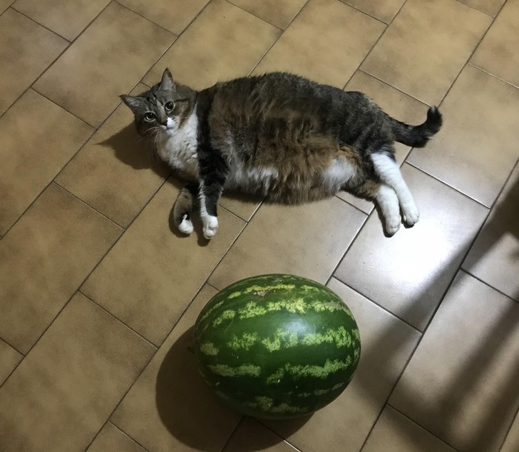 Товстого кота порівняли з кавуном, але цей пофігіст, здається, цілком задоволений собою