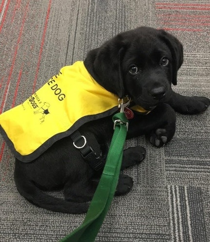 Цей щеня — майбутня собака-поводир. Це його перший тренінг