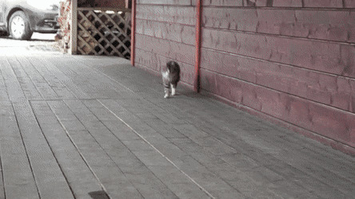 8. Кіт Ромка, який виріс на стайні, уміє бігати риссю