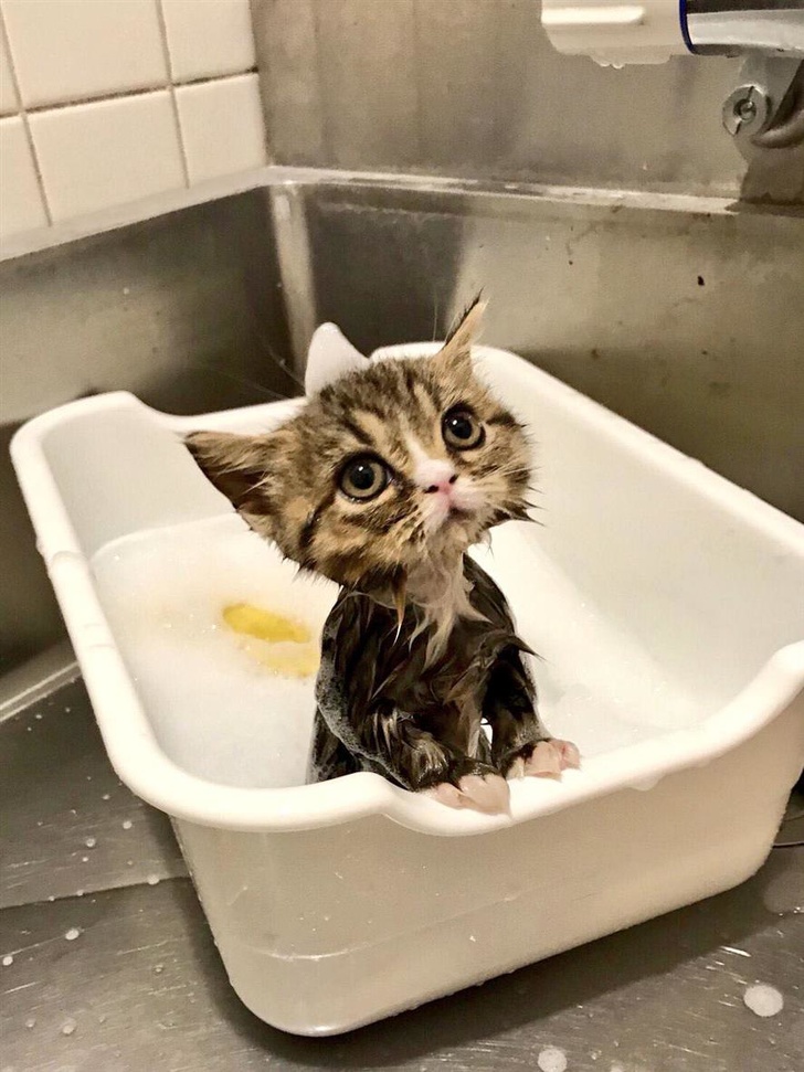 Під час миття кішки сумують, бо тепер усі знають, як вони виглядають насправді