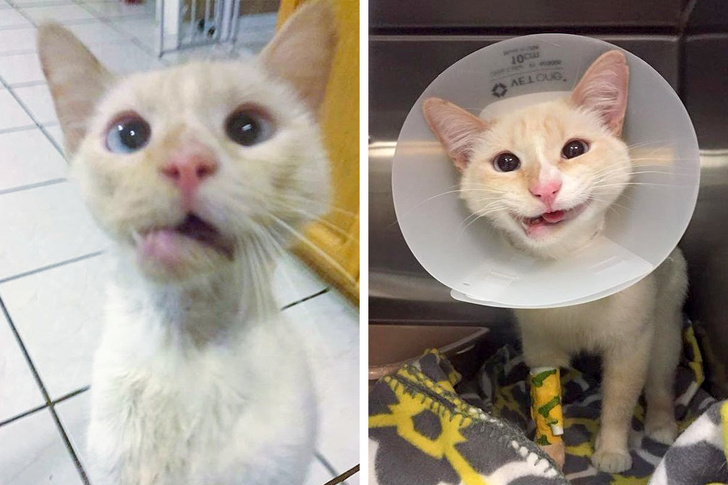 Герцогиня Диво-Кішка потрапила в притулок після автомобільної аварії, в результаті якої у нього була зламана щелепа. В іншому місці її приспали б, але місцевий лікар вирішив ризикнути, взявшись за складну операцію. За час, поки нова господиня Герцогині через соцмережі збирала кошти на її лікування, малятко стала зіркою інтернету, підкоривши всіх своєю загадковою посмішкою.