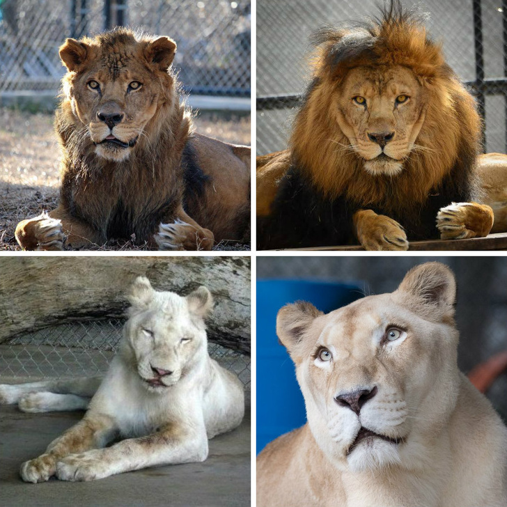 Кана і Шейлу конфіскували з одного розважального закладу, де за тваринами не доглядали і довели їх здоров'я до жалюгідного стану. У лева були серйозні проблеми з кістками, він кульгав на передні лапи і не міг тримати задню частину тулуба, а кінчик його хвоста був сирим і опухлим з-за постійного жування (швидше за все, від стресу чи нудьги). Левиця була буквально на грані смерті: вона не могла ковтати і пересуватися на лапах, але вчасно зроблений аналіз допоміг виявити токсоплазмоз і призначити правильне лікування. Про те, як пройшли кілька місяців реабілітації, можна судити за зовнішнім виглядом диких кішок, якими тепер неможливо намилуватися.