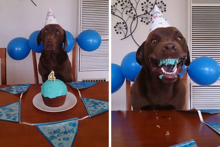 2. «Замовив собаці кекс на день народження. Різниця між фото — кілька секунд»