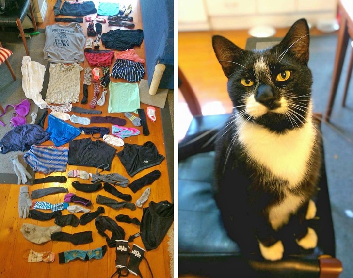 Дівчина влаштувала скандал своєму хлопцеві, бо знайшла в будинку чуже жіноча білизна. Виявилося, що так «постарався» їх кіт, який з часом накрав купу іншого одягу