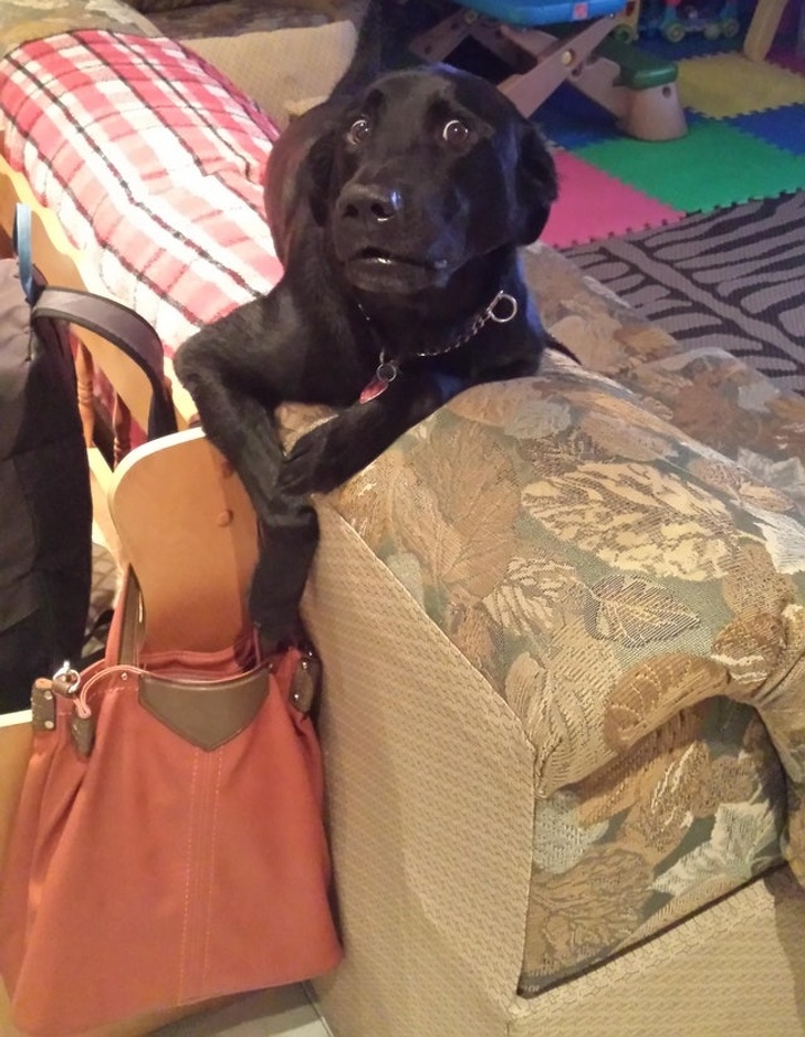 «Моя собака влаштувала бардак і тепер розслаблено сидить і спостерігає, як я прибираю. Ви тільки подивіться, як вона поклала свою лапу!»