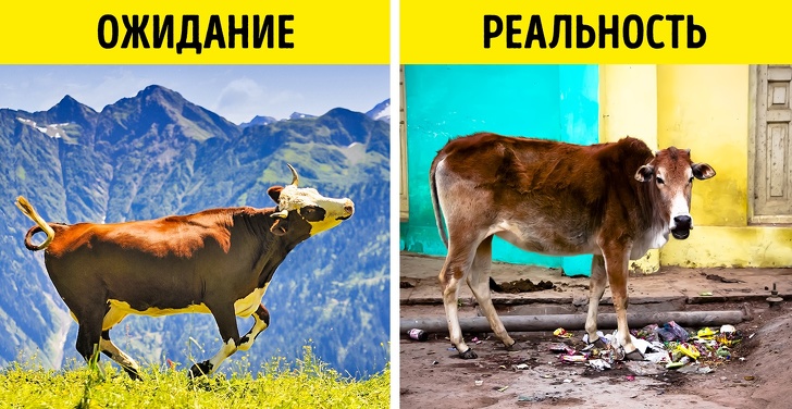 Але навіть у випадку вдалого пристосування до дикого життя багато тварини навряд чи будуть ситі та здорові. За прикладами далеко ходити не треба — подивіться, як живуть корови в Індії (на фото праворуч): священною твариною часто доводиться добувати собі корм серед сміття, що навряд чи можна вважати корисним. Зате своє життя вони закінчують не на бойні, а їх м'ясом харчуються, як правило, лише хижі тварини і птахи.
