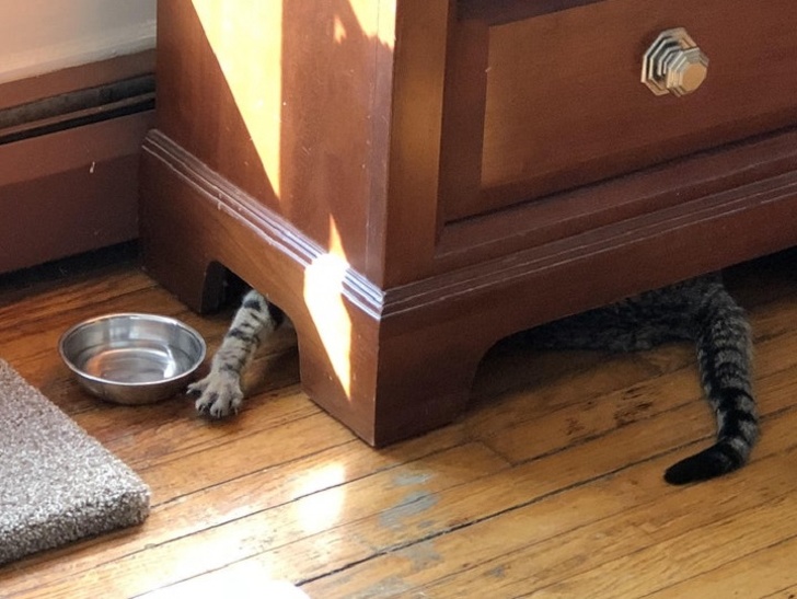 «Мій кіт, напевно, зламався, але він п'є воду, сидячи під тумбою для телевізора і вмочаючи свою лапу в миску»