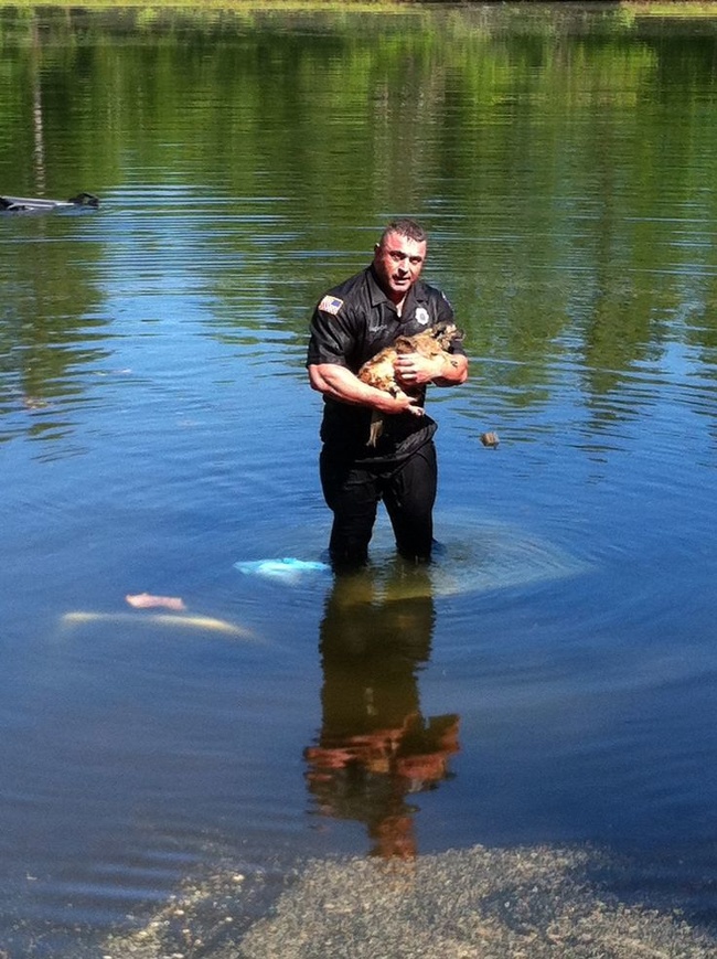 Офіцер поліції не роздумував ні хвилини, коли дізнався, що машина злетіла з траси і опинилася під водою. Жінка-водій зуміла вибратися, але її собачка була в полоні на глибині майже 3 метри. Девід Харріман просто віддав напарнику свою кобуру з табельною зброєю і пірнув у воду. Йому вдалося відкрити двері і врятувати чихуахуа Мокки. Пізніше поліцейський розповів, що у нього теж є собака — 8-місячний англійський бульдог по імені Джекс, і він просто не міг залишитися осторонь.