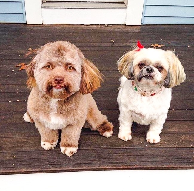 1. Песик зліва виглядає так, ніби він помінявся з господарем особою Face Swap