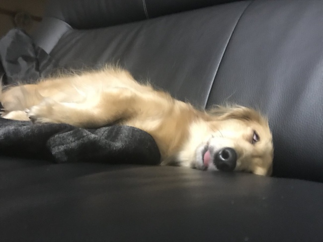 «Заходжу я в вітальню, а там моя собака так спить. Ніхто її не укладав, вона сама так вляглася. Очевидно, вона навчилася цього у господаря... У мене»