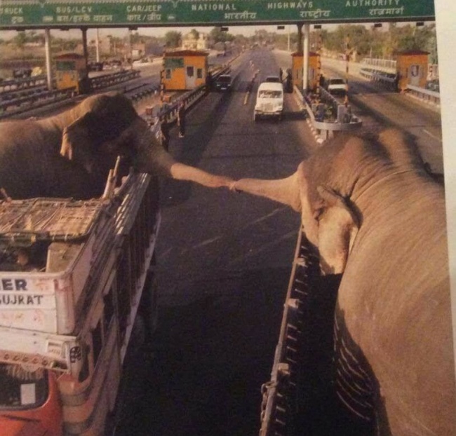 Бонус: цікава реакція слонів, коли вони вперше зустрілися на дорозі
