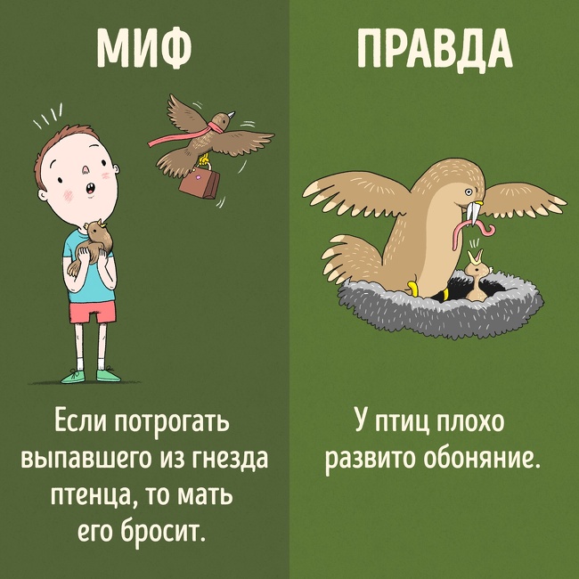 Переважна більшість птахів практично не розрізняють запахи, і "аромат" людини на птенце вони просто не відчують.