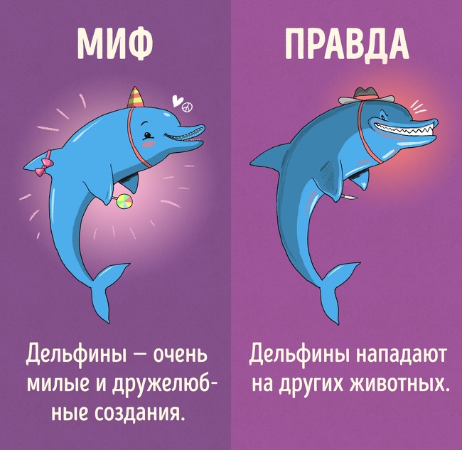 Дельфіни іноді вбивають своїх дитинчат, нападають на морських свиней. До того ж дельфіни, перш ніж вбити своїх жертв, можуть вступати з ними в статевий контакт.