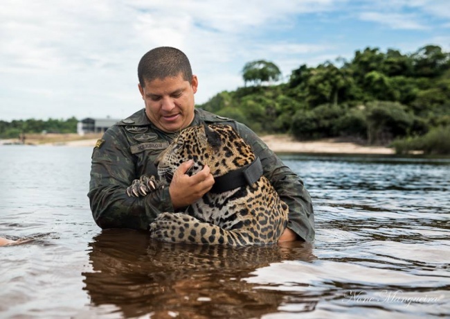 Солдати бразильської армії знайшли ледь живого маленького ягуара в джунглях Амазонки. Його взяли з собою і виходили, але він не пристосований для життя на волі, тому місцеві власті дозволили залишити хижака під наглядом солдатів. Зараз Джикитай (так назвали ягуара) здоровий і з ніжністю ставиться до людей, які його врятували.