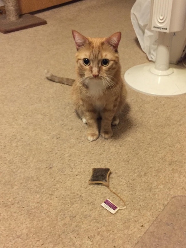 14. «Деякі коти приносять своїм господарям в якості подяки мишей і птахів. Мій приніс мені чайний пакетик»