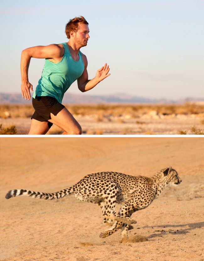 В світі тварин, щоб зловити здобич або щоб нею не стати, потрібно вміти швидко бігати. Гепард, наприклад, здатний розвивати швидкість 120 км/ч. В розумних межах біг — це завжди користь і здоров'я (якщо у людини немає хвороб та протипоказань). Це найкращі ліки від депресії, нервового напруження і інших «принад» сучасного життя. Тому вчіться у тварин. Якщо хочете зберегти здоров'я в цьому божевільному світі, знайдіть час для пробіжок.