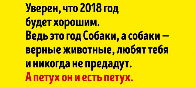 Згідно зі східним календарем наступний рік пройде під знаком Жовтого Земляного Собаки. Астрологія говорить, що 2018 рік подарує стан релаксу, умиротворення і мирного споглядання дійсності. І це круто.