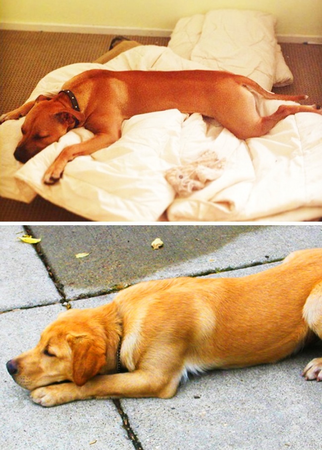 У такій позі собаки висипаються і добре відпочивають, і, навіть якщо день був насиченим, багатьом тваринам подобається так спати. Також сон на боці означає, що вихованець відчуває себе в повній безпеці, так як він не прикриває життєво важливі органи. Коли собаки відчувають почуття комфорту і довіряють тим, хто знаходиться поруч, вони можуть дозволити собі спати в такий розслабленій позі. У таких псів сильна зв'язок з господарем та його сім'єю.