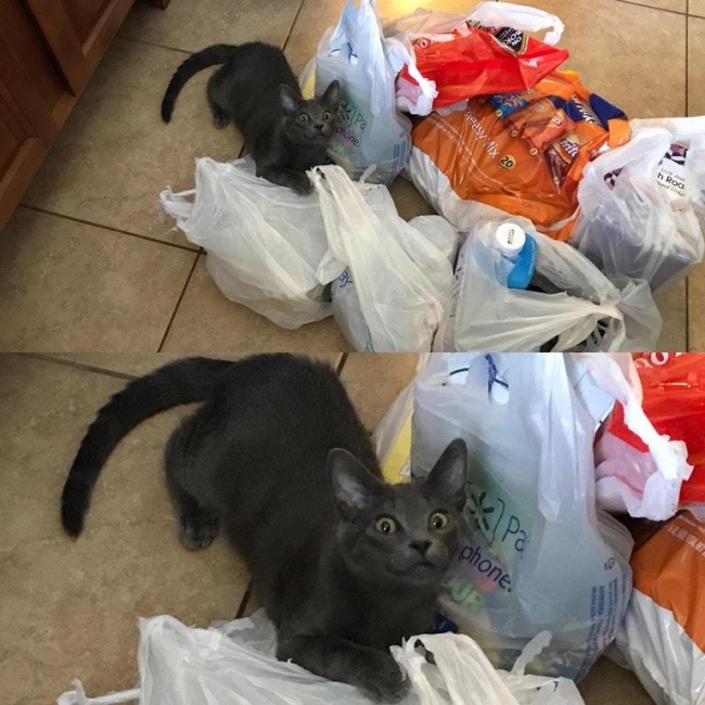 Моя кішка завжди перевіряє, що я купив в магазині. Момент, коли вона пронюхала печеня з яловичини