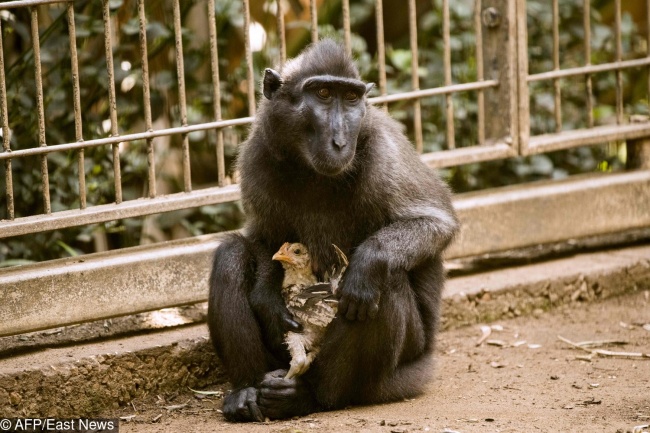 Чорна макака Нів, що живе в ізраїльському зоопарку в місті Рамат-Гані, не змогла знайти собі пару серед родичів і почала дбати про курчати з сусіднього вольєра. Примат піклується про птаха, а та завжди вдається, коли їй страшно, і шукає захисту, ночує поруч зі своєю прийомною мамою.