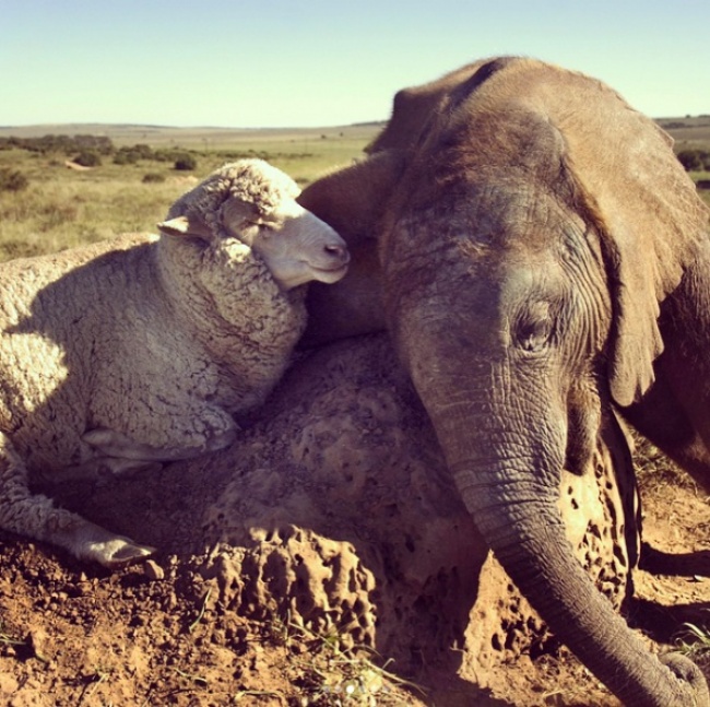 Після того, як 6-місячний слоненя Тембо залишився сиротою і був кинутий своїм стадом, співробітниками заповідника Шамварі в Південній Африці було прийнято рішення його врятувати. Спочатку вівця Альберт агресивно сприйняла чужинця, але швидко відтанула і стала другом і наставником слоненяти.