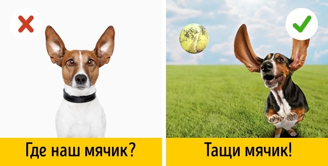 «Кульку, неси м'ячик! Кулька, біжи сюди! Кулька, де твої іграшки?» І ось ви заплутали бідного Кульки, він починає нервувати, хоча ви просто хотіли пограти з м'ячем. «Начебто з м'ячем, але господар говорив іграшки, про що це він?»