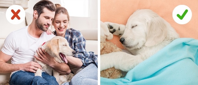 Коли хтось із домашніх засинає на дивані, ми намагаємося тихенько прикрити його пледом, щоб він не прокинувся. Але це правило не діє на наших чотириногих підопічних. Прикривати ковдрою не обов'язково, але пам'ятайте, що і для тварин бути розбудженим — неприємний стрес.
